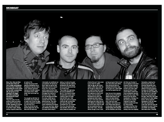 Band Photography and magazine spread for Skinboat, Barnsley